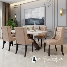 Meja Makan Minimalis Top Marmer Mewah 6 Kursi