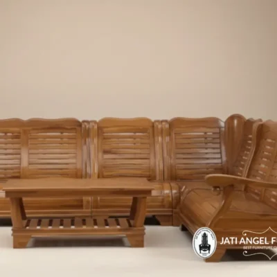 - Desain Kursi Sudut Ruang Tamu Kayu Jati Elegan yang berkualitas tinggi, karena bahan baku yang digunakan adalah kayu Jati atau Mahoni perhutani yang kayunya sudah terjamin ketahanannya dan dapat bertahan hingga Puluhan Tahun.