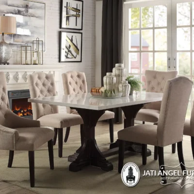 Set Meja Makan Top Marmer Minimalis Jepara